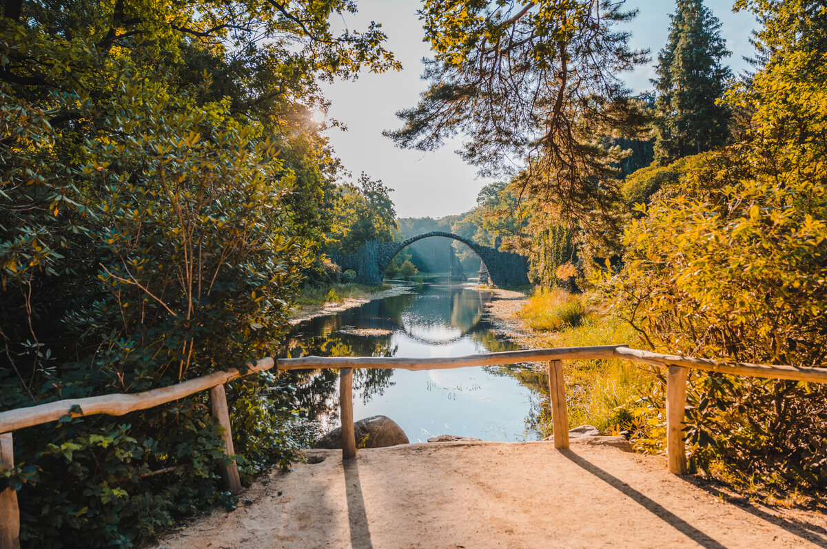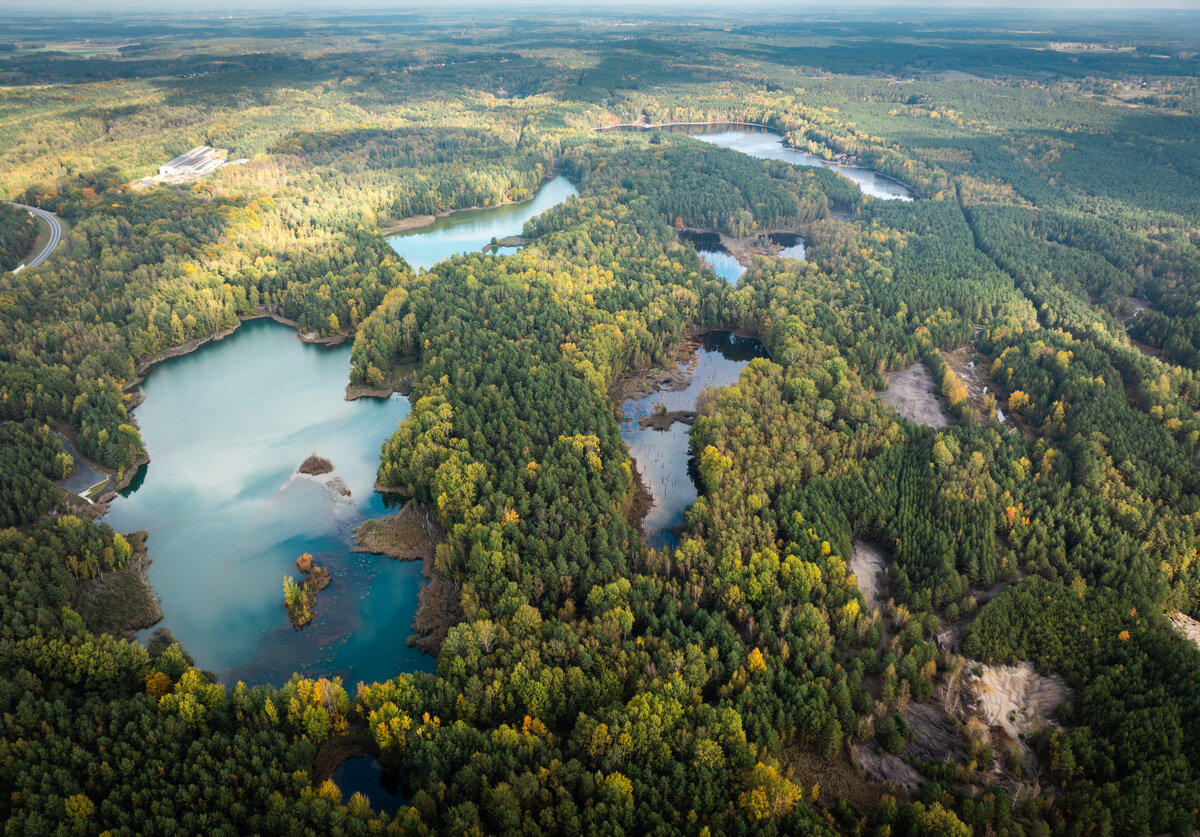 The Muskau Arch has been recognized by UNESCO as a Global Geopark since 2015. What makes it so special is the interplay between the natural forces of the Ice Age and the human influence of mining. The German-Polish Global Geopark Muskauer Faltenbogen/ Łuk Mużakowa is the cradle of lignite mining in Lusatia. At times, over 60 mines were active at the same time. It was only with the emergence of large open-cast mines that the Muskauer Faltenbogen lost its importance and man withdrew, leaving the mines to nature. Today, relics of these times are omnipresent: natural valleys and hundreds of narrow mining lakes that shimmer in all colors. Particularly worth seeing is the Babina mine on the Polish side of the Folded Arch and the Devil's Stone, the largest boulder in the Folded Arch, with clearly visible notches from the devil's claws. The yellow brick houses, which can only be found in the Folded Arch, are also remarkable, as their bricks were fired from the local bottle clay. From the observation tower at Felixsee you have a great view of the unique landscape.